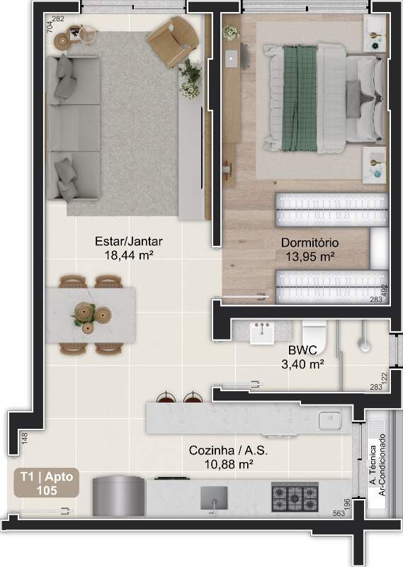 - Apartamentos com 1 dormitório