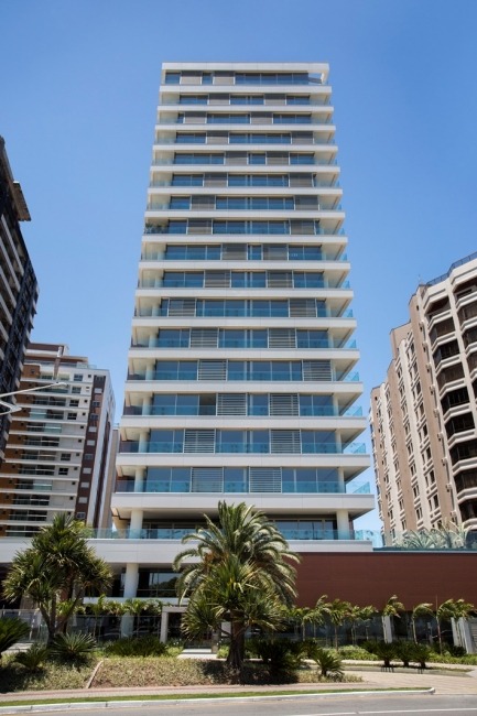 - Apartamentos 3 suítes com churrasqueira, sacada com vista para o mar, lavabo, cozinha integrada, banheiro de serviço, 2 vagas de garagem