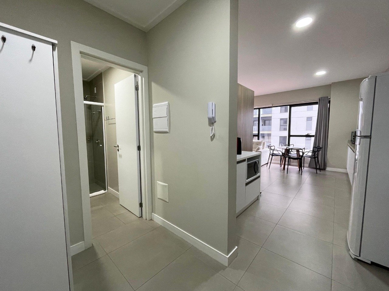 - Outras informações: Face principal Norte e Leste. Piso porcelanato. Estúdio mobiliado com armários na cozinha, dormitório e banheiro. Ar condicionado Split sala e dormitório.