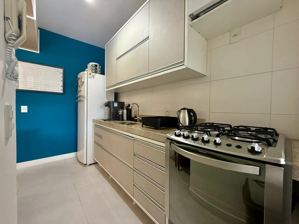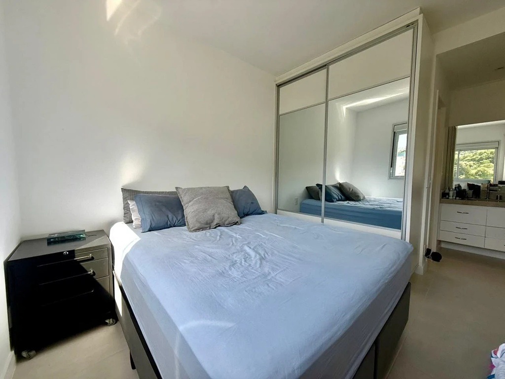 - Outras informações: Apartamento completamente mobiliado com armários planejados. Ar condicionado split instalado na sala e suíte. Janela do dormitório com persiana. Medidores individuais de água e gás. Fechadura eletrônica