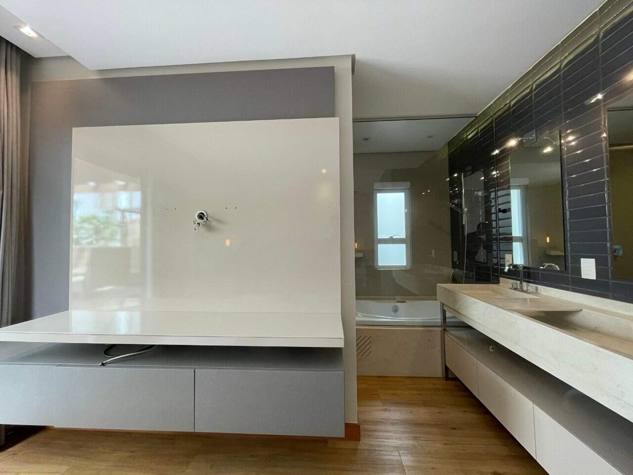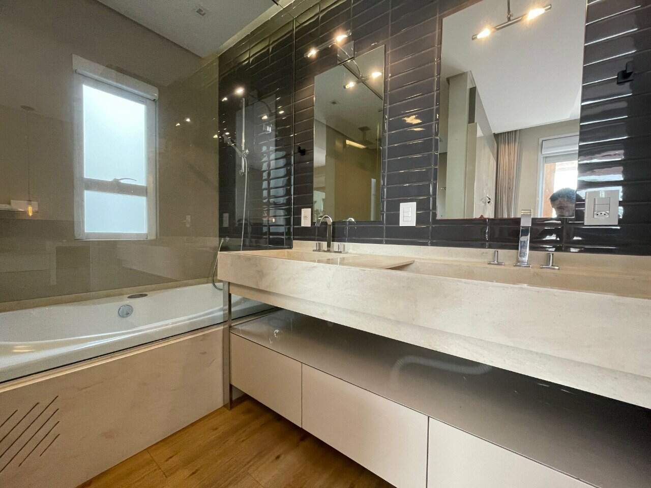 - Outras informações: Face principal sul com vista livre. Piso cerâmico e piso vinílico. Apartamento planejado pela empresa Pimont Arquitetura, com armários planejados em todos os ambientes. Os móveis soltos foram retirados. Mas os moveis embutidos e eletros como (forno, fogão, geladeira, microondas, maquina de lavar roupa/secadora) se mantem no imóvel. Ar condicionado split instalado na sala e suítes. Aquecimento de água por aquecedor de passagem. Medidores individuais.