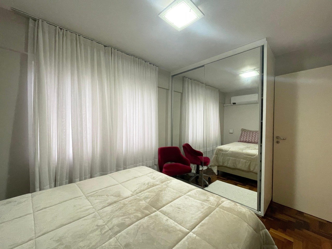 - Outras informações: Piso taco de madeira e cerâmico. Apartamento semi mobiliado com armários na cozinha, dormitório e banheiro.
