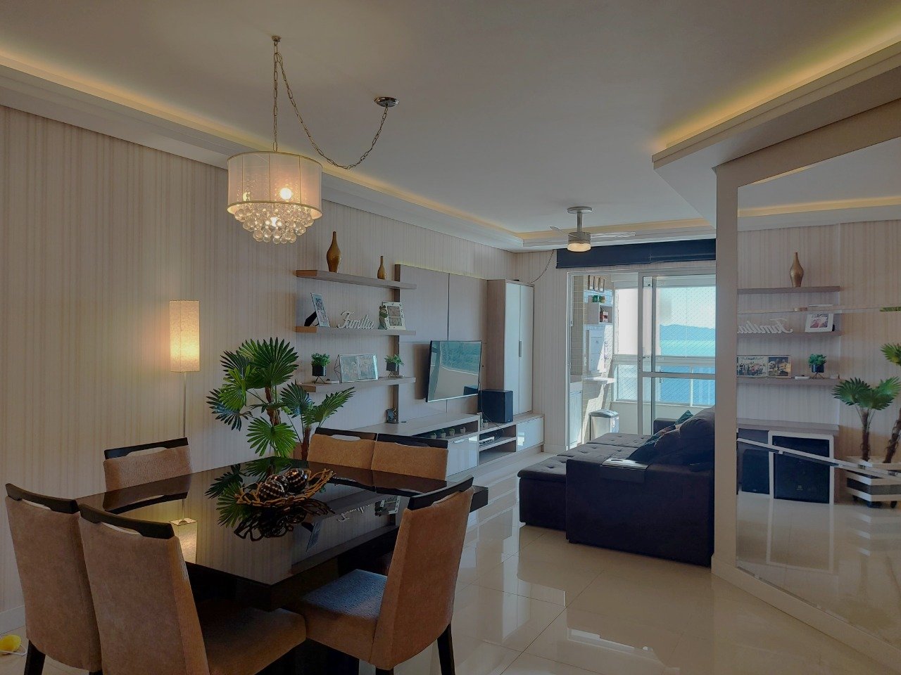 Outras informações: Face principal norte com vista para o mar. Piso porcelanato. Apartamento mobiliado com armários planejados em todos os ambientes. Ar condicionado split instalado nos dormitórios. Fechadura eletrônica. Persianas dos dormitórios automatizadas. Suíte principal com hidromassagem. Aquecimento de água a gás. Medidores individuais.