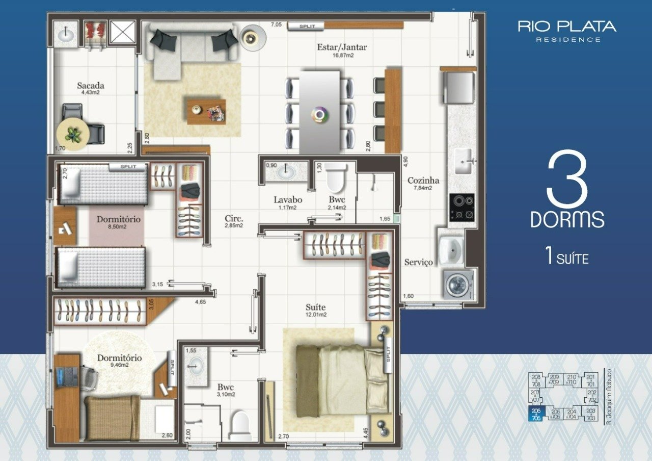 - Apartamento 3 dormitórios (1 suíte)