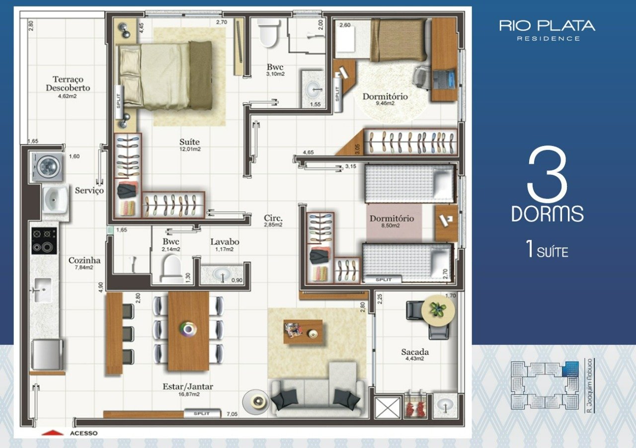 - Apartamento 3 dormitórios (1 suíte)