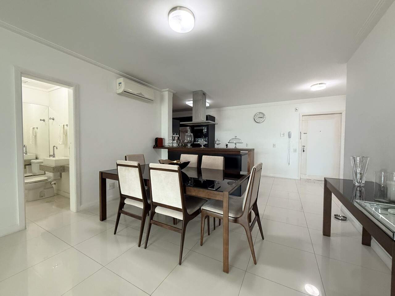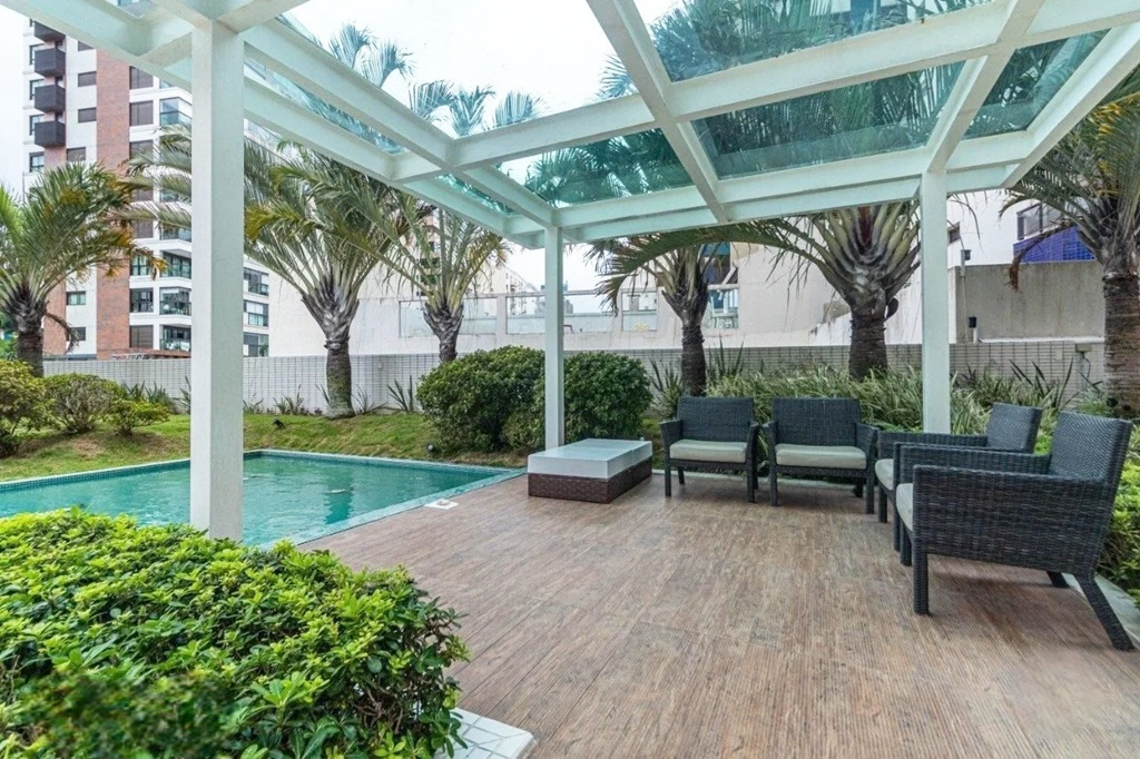 - Outras informações: Face Norte. Piso porcelanato e laminado. Apartamento mobiliado com armários em todos os ambientes. Ar condicionado split na sala e quartos. Aquecimento de água por caldeira. Persianas nas janelas.