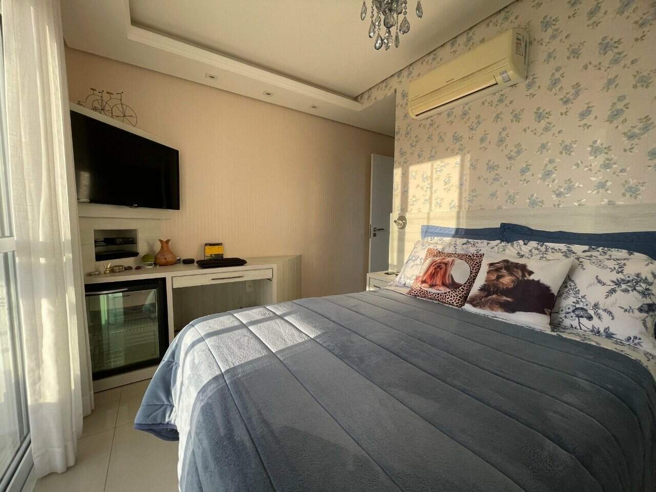 - Outras informações: Face oeste com vista livre. Piso porcelanato. Apartamento semi mobiliado com armários em todos os ambientes. Cozinha equipada com cooktop, micro-ondas e forno elétrico. Ar condicionado split nos quartos. Aquecimento de água. Persianas elétricas nas janelas dos quartos. Medidores individuais.