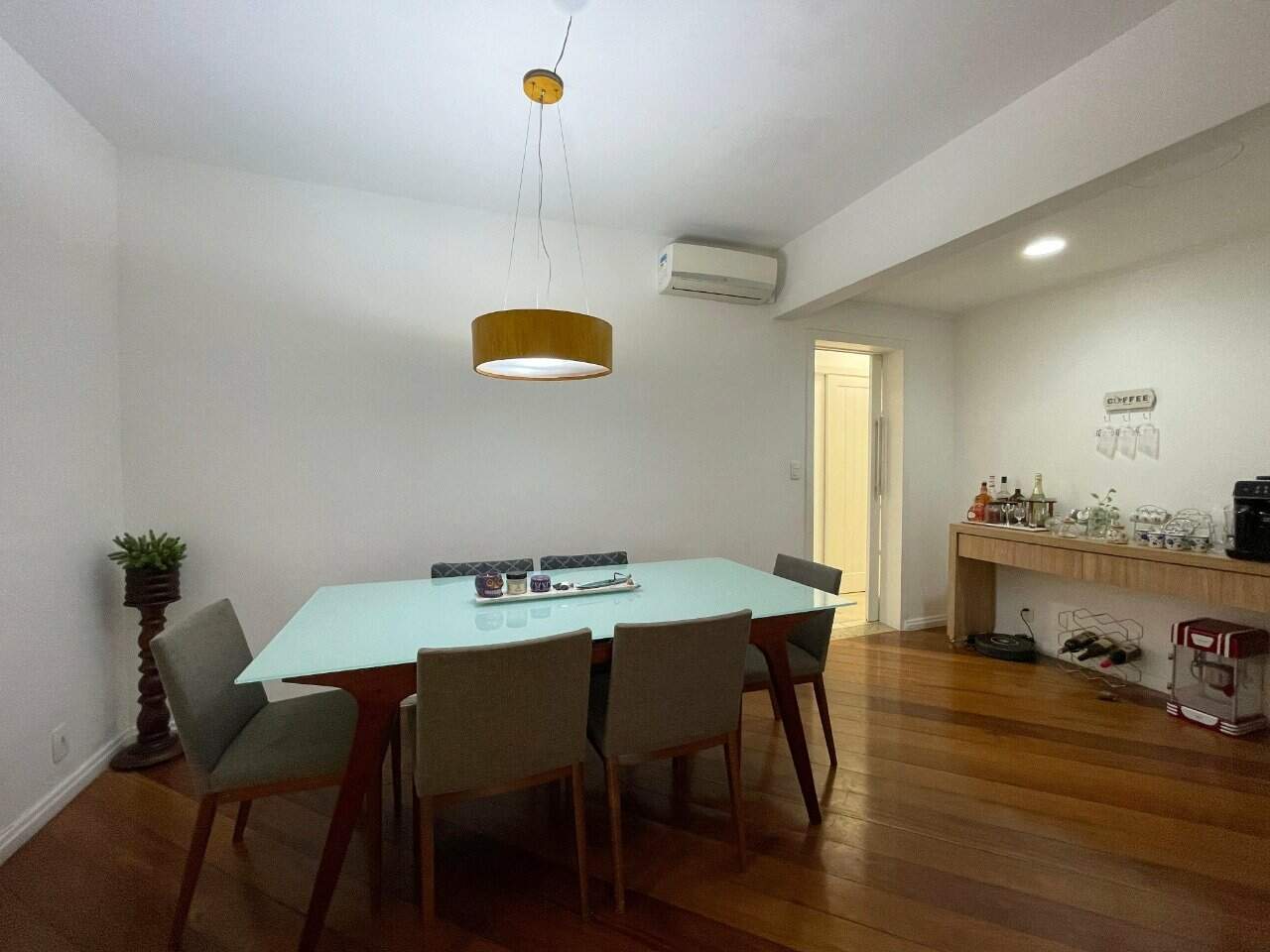 - Outras informações: Face principal sul. Piso de madeira e piso cerâmico. ar condicionado split instalado na sala, dormitório e suíte. Apartamento semi mobiliado. Persianas nas janelas dos dormitórios.