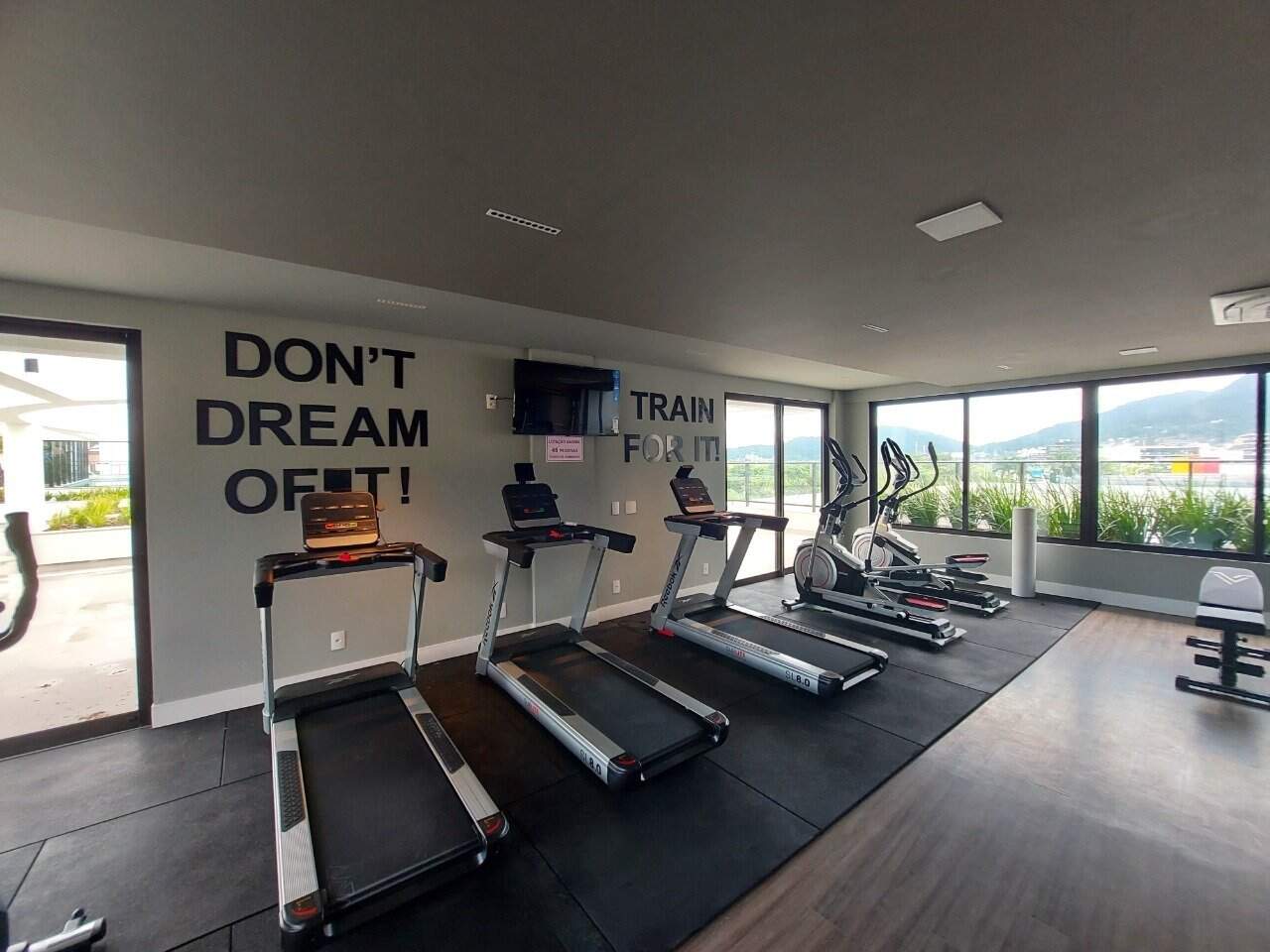 Bem-estar: pista de caminhada, espaço para alongamentos e espaço fitness