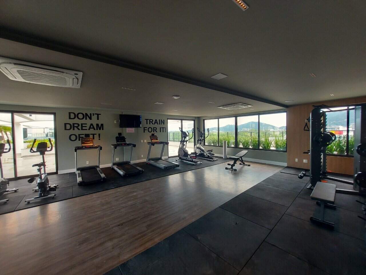 Bem-estar: pista de caminhada, espaço para alongamentos e espaço fitness