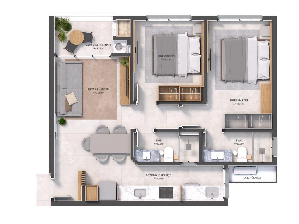 - Apartamento 2 dormitórios (1 suíte)