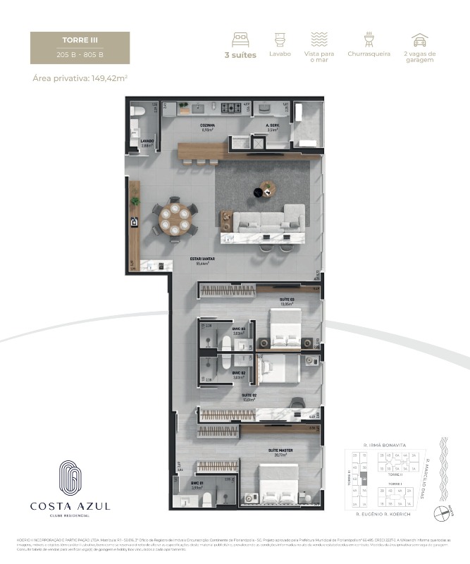 Localizado no Jardim Atlântico, próximo ao Balneário do Estreito, à Marinha e à Beira-Mar Continental, o Costa Azul Clube Residencial está em um bairro que oferece praticidade e lazer na medida certa. Com fácil acesso para o trabalho, a região combina agitação e tranquilidade, sendo perfeita tanto para quem gosta de bares e boa gastronomia quanto para os que preferem caminhadas à beira-mar e momentos de relaxamento nos parques. O Costa Azul é mais que um lar; é um clube residencial com ampla área de lazer, tecnologia moderna, um exuberante projeto paisagístico e uma vista deslumbrante para o mar, projetado para você viver plenamente.