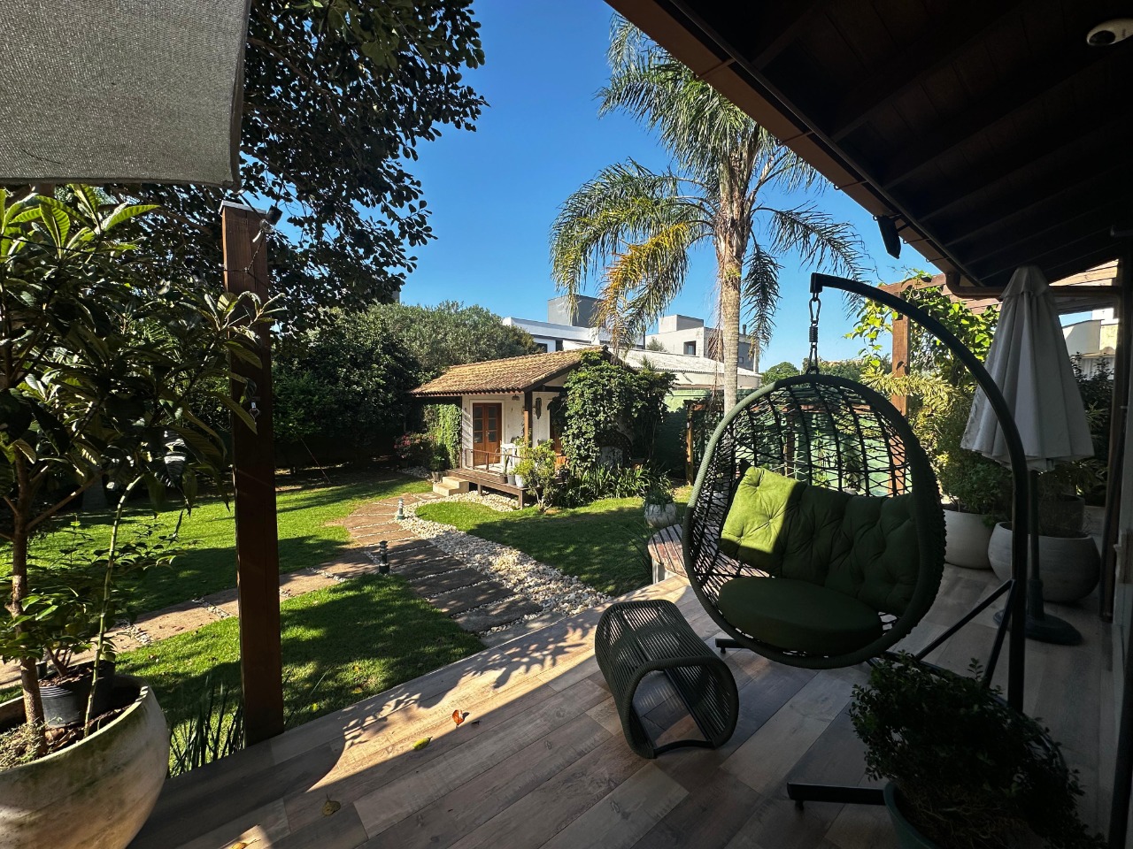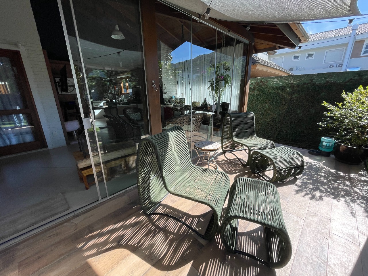 - Outras informações: Face leste com vista para área verde. Piso porcelanato e madeira. Casa mobiliada e decorada. Ar condicionado na sala e quartos. Aquecimento de água por aquecedor solar. Persianas elétricas.