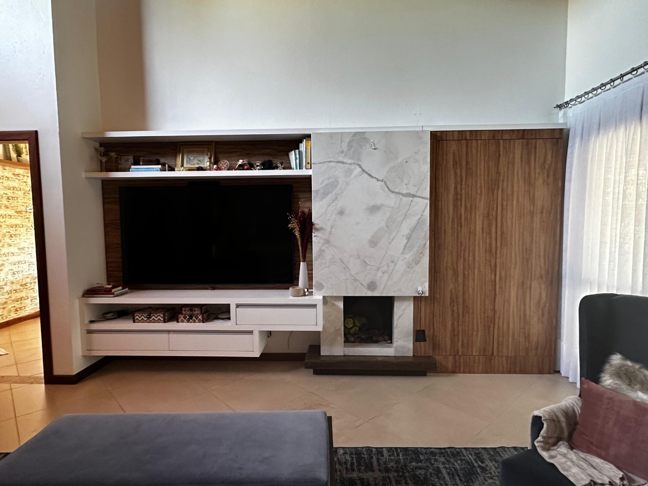 - Sala de estar com lareira elétrica