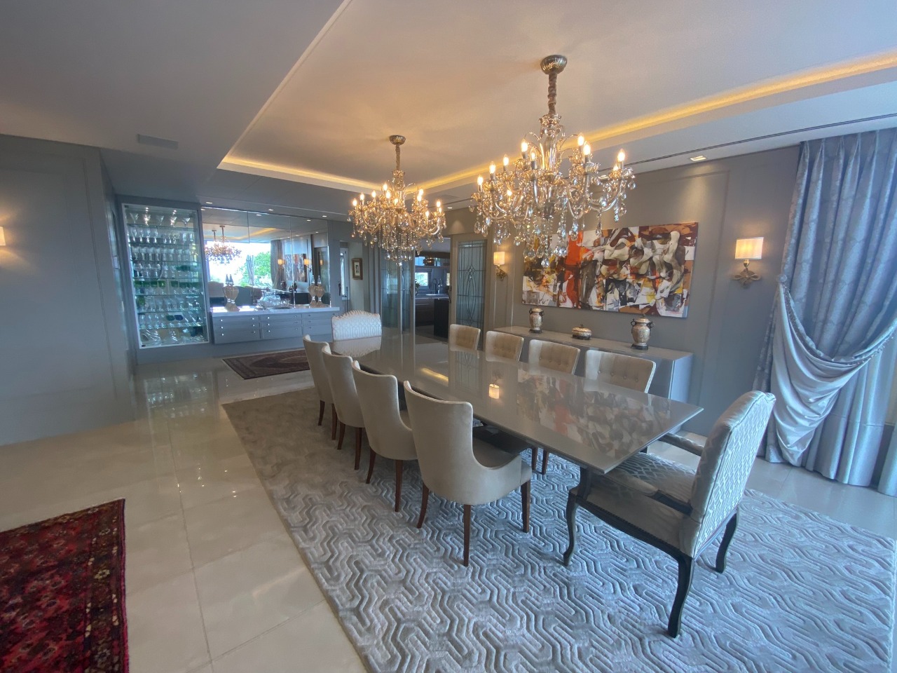 - Outras informações: Face oeste com vista para o mar. Piso porcelanato e laminado de madeira. Casa mobiliada com armários em todos os ambientes, home theater e adega. Ar central em todos os ambientes.