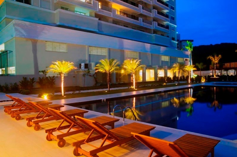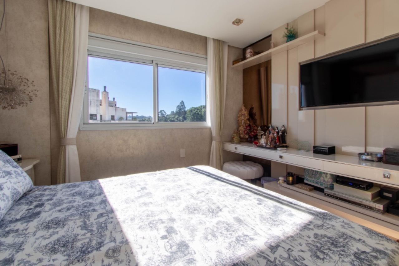 - Outras informações: Vista livre. Piso porcelanato e laminado de madeira. Apartamento mobiliado, decorado e com lareira e piscina. Ar condicionado split na sala e quartos. Aquecimento de água por aquecedor de passagem. Persianas nas janelas dos quartos.