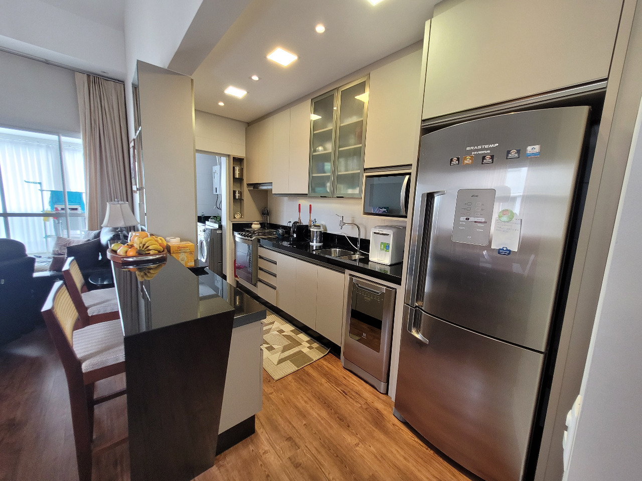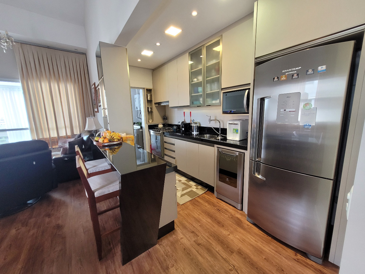 - Outras informações: 8° andar. Face sul com vista livre. Piso vinílico e porcelanato. Apartamento semi mobiliado com armários em todos os ambientes. Espera para ar condicionado. Aquecimento de água por aquecedor de passagem. Persianas elétricas. Hidrômetro individual.