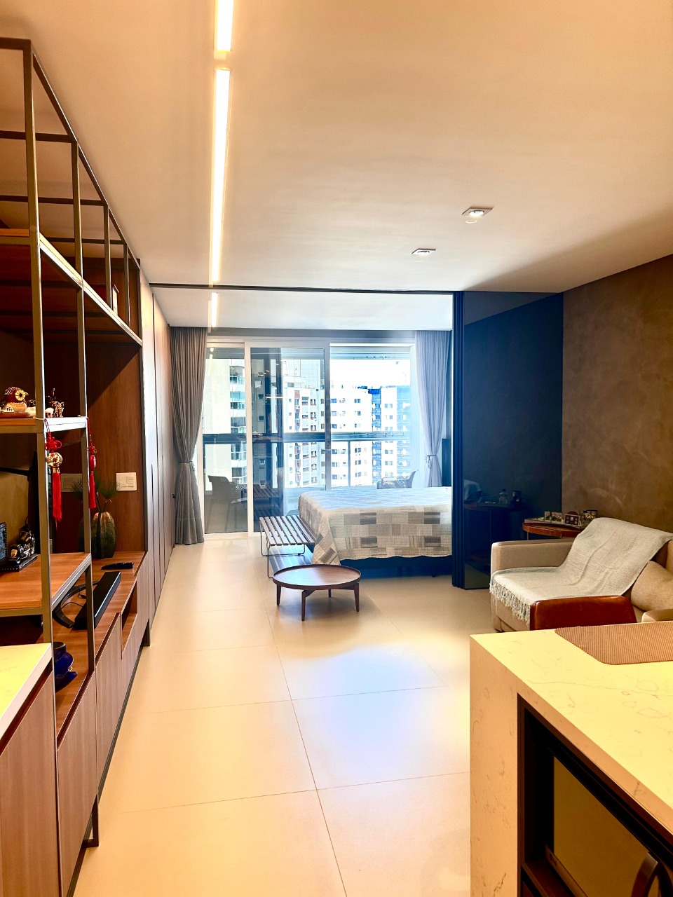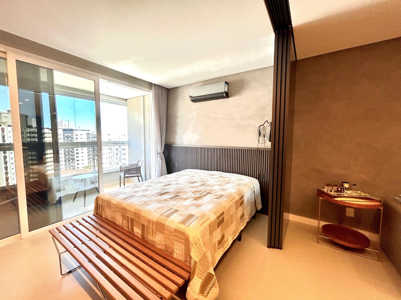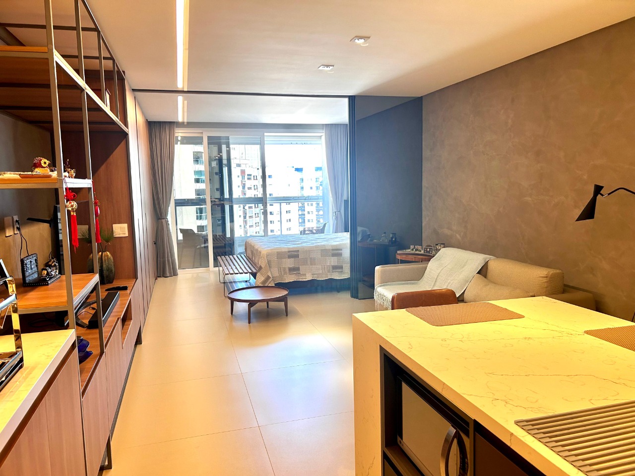 - Outras informações: Face oeste com vista livre. Piso porcelanato. Apartamento finamente mobiliado e decorado. Ar condicionado split instalado na sala e quarto. Aquecimento de água por caldeira. Medidores de consumo individuais.